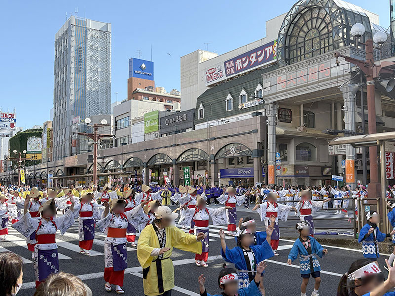 たくさんの踊り連や観覧者で大通りはにぎわっていました。